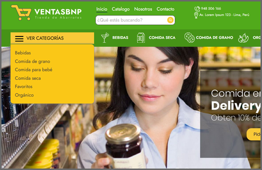 Dentro del Sitio Web se presenta iconos de acceso directo a una determinada categoría de productos, estos iconos ubicados en la cabecera del Sitio pueden reorganizarse, ajustarse o retirarse a pedido del Cliente.