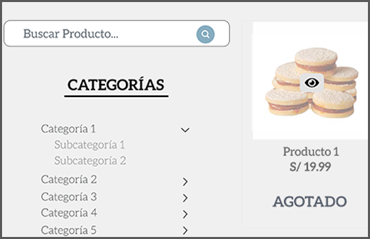 Otra forma de organizar los producto es presentarlos por categorías y subcategorías. En el ambiente administrador podrá personalizar sus productos, colocar favoritos, descuentos, ofertas, armar combos, subir más de una imágen, modificar masivamente los precios de los productos, así como modificar o registrar nuevas categorías y subcategorías.